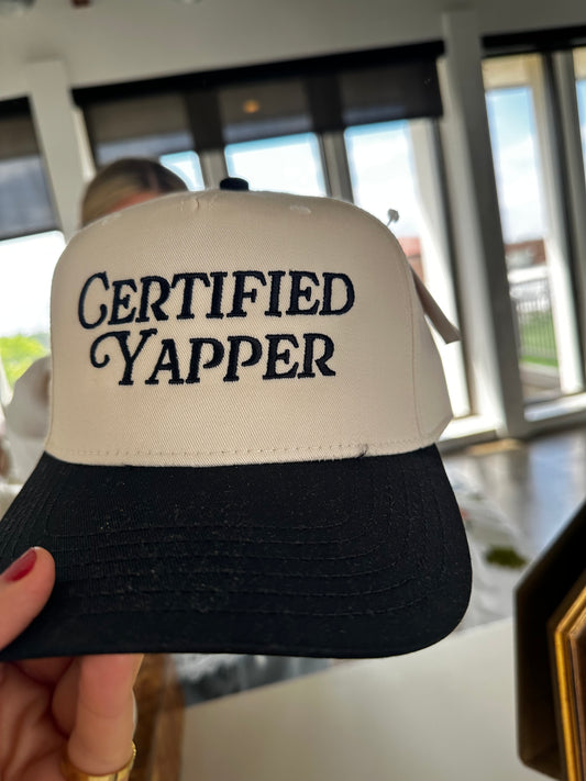 Certified Yapper Two-Toned Vintage Hat: Black and Tan