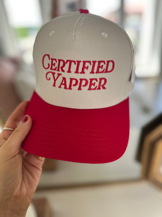 Certified Yapper Two-Toned Vintage Hat: Red and Tan