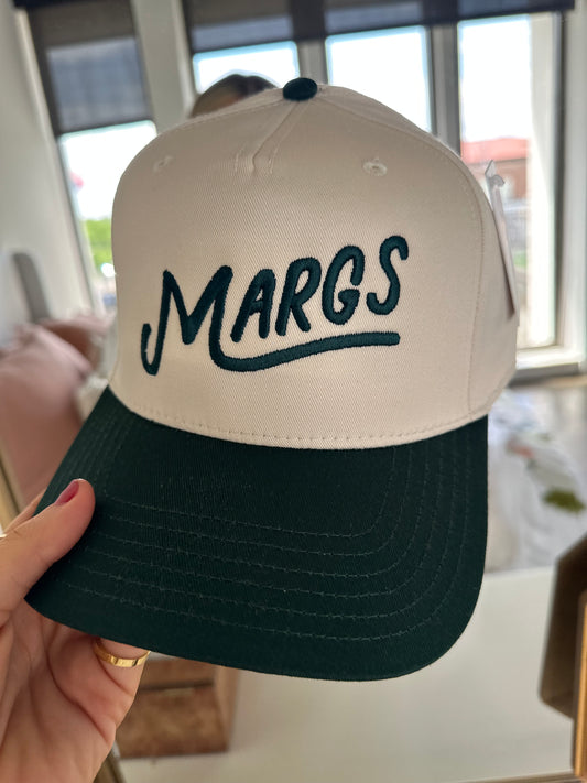 Margs Two-Toned Vintage Baseball Hat: Dark Green and Tan