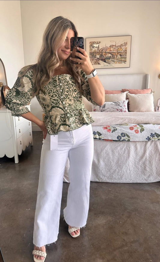 Meet you at Happy Hour Scallop Lace Trim Peplum Hem Top