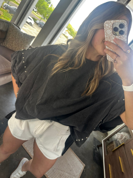 Sold outTalk to Me Studded Tee- Black