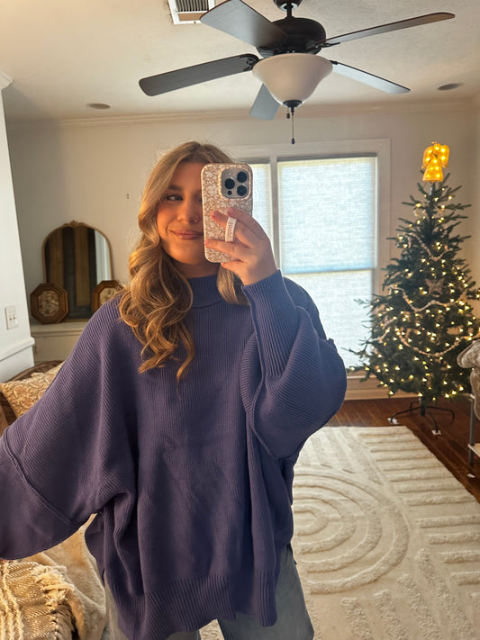 Lavender Side Slit Oversized MockNeck Sweater
